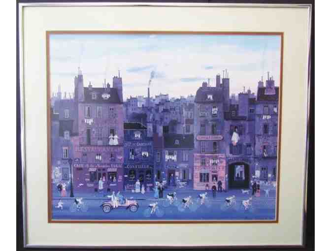 A beautiful framed print for the cyclist by Michael Delacroix. Michel Delacroix is a French contemporary artist famous for his Paris street scenes.