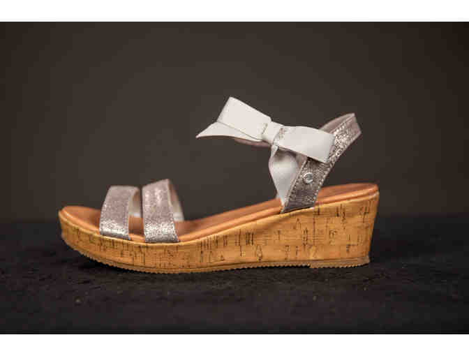 UGG I Heart Joblyn Crackle Textile Sandal w/Bow Kid's (Size 4 - Silver)