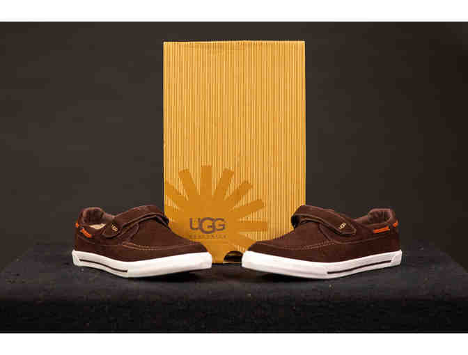 A boat shoe inspired sneaker with suede. These UGG Halfhitch Sneaker Kid's are brown and size 5