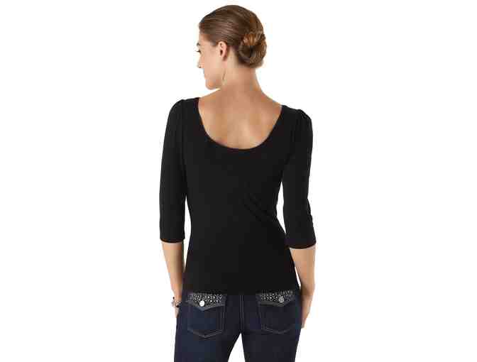 This classy White House Black Market Scoop Back Tee (Size Medium in Black) is a perfect basic for any woman's closet!