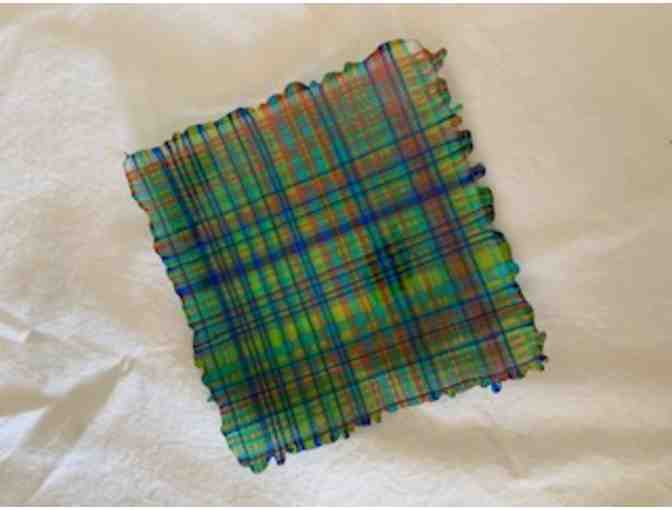 Add color and whimsy to your home with this pretty little 6 x 6 inch "tapestry" plate. Or, give this one of a kind plate as a gift to someone with great artistic "taste."