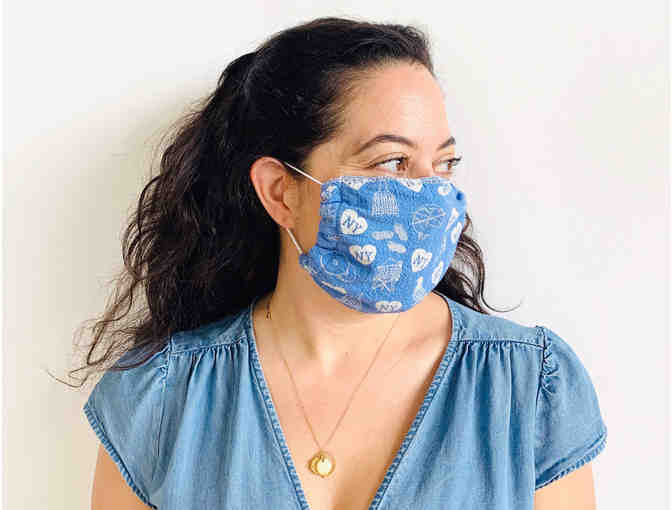 Handmade fabric face mask with graphic icons that illustrate our love for New York City. Stay safe with this stylish mask.