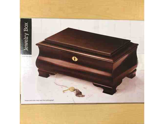 - Removable tray with eight ring rolls, six compartments, and a lock and key