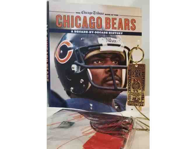 Give your Bears fan a trip down memory lane with a copy of a decade-by-decade history of the team produced by the Chicago Tribune. Package also includes an authentic shiny brass ticket keychain from Super Bowl 20 and a limited edition Bears flag digitally signed by current outside linebacker Khalil Mack.