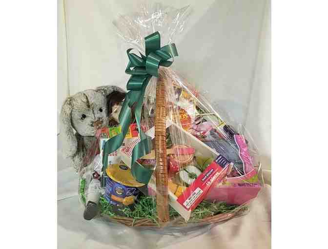 Perfect gift for the new (or about to be) Grandma. Oversized basket has something to keep every age occupied from a teddy bear and doll to puzzles, toys, books and time-honored snacks.