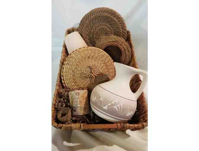 For people in the know, this is more than a beautiful array of Native American wares. It's a collector's dream, featuring four handmade baskets and two signed pieces of Navajo and Sioux pottery (pitcher and vase). Antiques Roadshow fans will recognize that Native American-made items like these never lose their value.