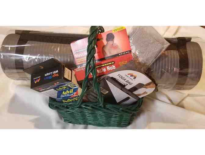 Everything you need to get your yoga on, including a yoga mat, carrying bag, straps, towels, sweat bag, Advil, and muscle rub! Kit also comes with a one-month, unlimited yoga gift certificate from Power Moves Yoga in St. Charles.