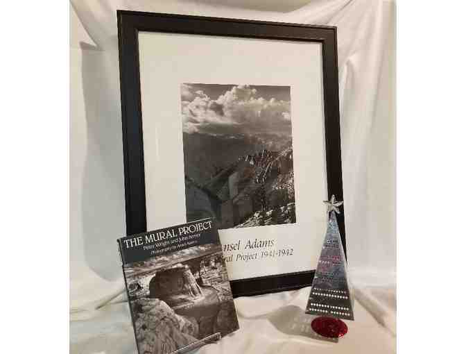 Framed Adams reprint (1992) by the premier Donald Art Co. in New York. Photo is one of many Adams took for the Mural Project he undertook in the early 1940s taking pictures of National Parks throughout the country, and 85 of these pictures were included his The Mural Project book. A first edition copy of that book is included in this package. First edition, published 1989.