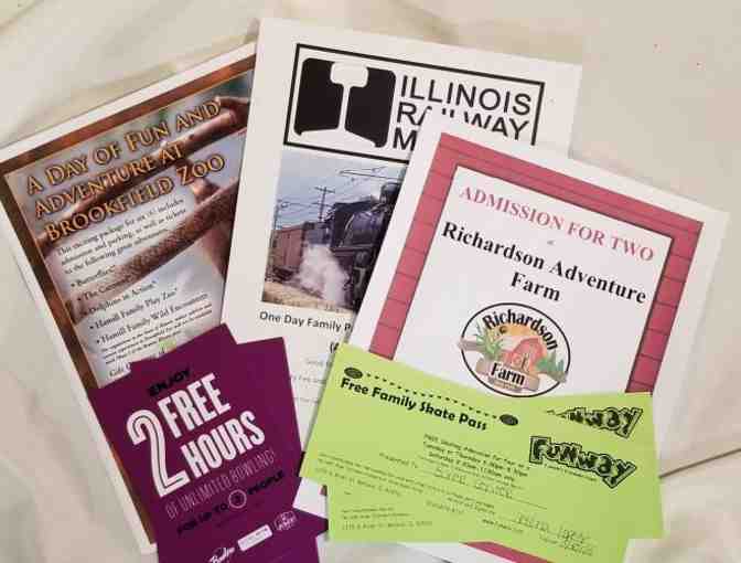 Basket features all kinds of fun for your family, including passes to Funway Skating, Kohls Childrens Museum, Illinois Railway Museum, Bowlero, Brookfield Zoo, Richardson Adventure Farm, Kings Island Amusement Park, and more!