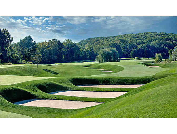 Golf foursome and carts at TPC Riverhighland Golf Course located in Cromwell, CT