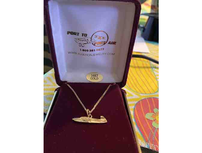14k yellow gold Mooney Plane Side View Necklace and Earrings from Aviation Jewelry
