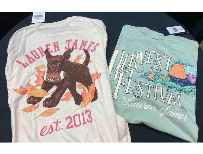 This pack includes two size M long sleeve tees from Lauren James. LJ tees are known for their beautiful back designs, front pocket with LJ logo, and super- soft material!