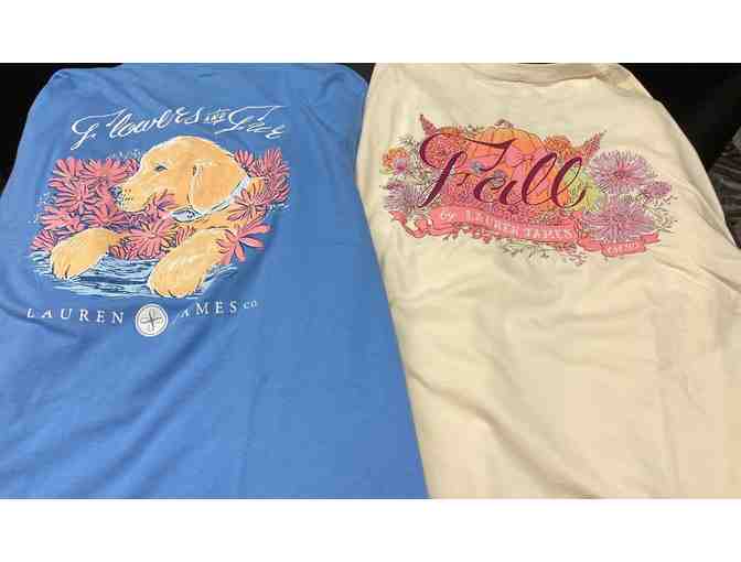 This pack includes two size M long sleeve tees from Lauren James. LJ tees are known for their beautiful back designs, front pocket, and super- soft material!