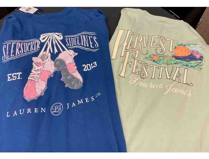 This pack includes two size M long sleeve tees from Lauren James. LJ tees are known for their beautiful back designs, front pocket, and super- soft material!