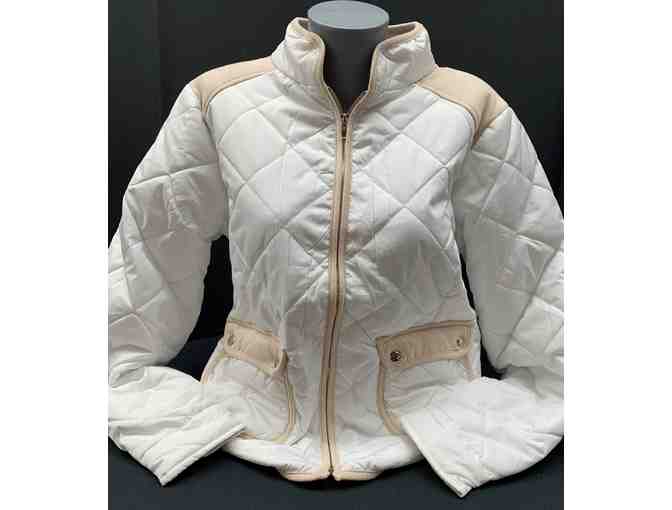 This lightly quilted ivory jacket is perfect for brisk fall days. Size: X Large