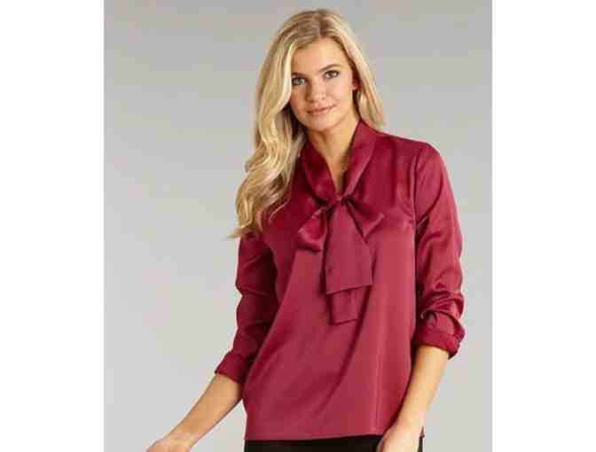 This top goes from office to party! Long sleeves are accented with gold buttons.