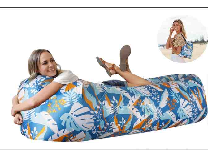 This is PERFECT for lounging by the lake or the beach! Easy inflation- no pump necessary! Just whisk through the air to inflate. Comes with a carry bag!