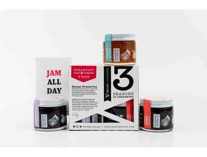 I've selected preserves from each season that are versatile in their use, whether it's making a piece of toast as you head out the door to work, adding blackcurrant plum preserves to a bowl of yogurt or kicking it up a notch and using Pear Lemon Sage White Pepper Marmalade to make a stellar Gimlet, these three flavors are the perfect place to start exploring the range of flavors from V Smiley Preserves.