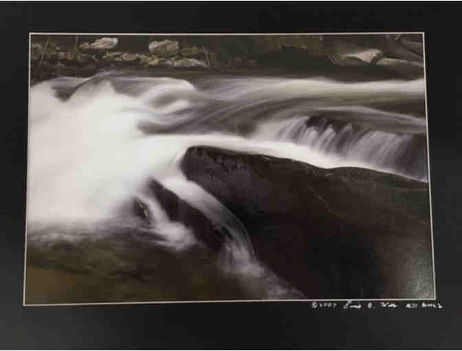 This photograph measures 16" x 20" and is matted and signed by the photographer Daniel Wells. It depicts the ethereal nature of water as it rushes down a mountain stream.