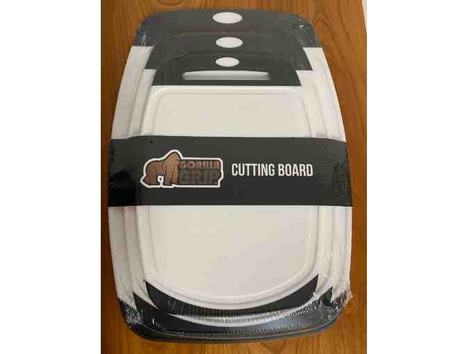 This set of 3 Cutting Boards contains large (16 inches by 11.2 inches), medium (13.8 inches by 9.6 inches), and small (11.8 inches by 8 inches) cutting boards that are thicker than most other cutting boards, and reversible for double the use. They have deep grooves to catch juices so your countertop stays clean. With multiple cutting boards, you can avoid cross-contamination and flavor-mingling while you cook.