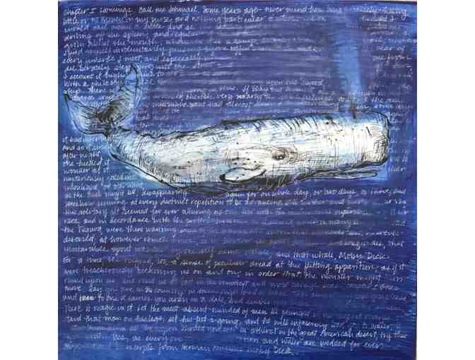 Original drawing with floating text from chapter one of Moby Dick, mounted on birch panel, 18 x 18"
