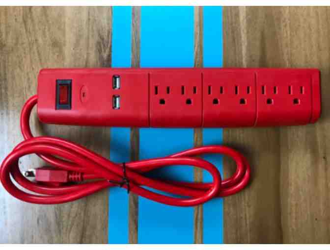6 Outlet Surge Protector w/Dual USB Ports (red color) & 6' Cord Black
