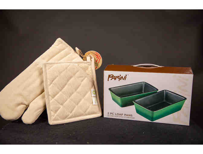 Banana Bread is a staple in many homes- so why not gift someone with new loaf pans and pot holders?!