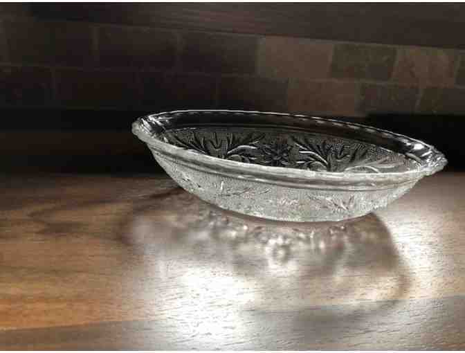 Remember Willy Wonka and the Chocolate Factory? "Who can take a sunrise? Sprinkle it with dew. Cover it with choc'late and a miracle or two. The Candy Man. Oh, the Candy Man can." Or in this case, the candy dish can. Now you too can share a piece of heaven, share a little love and spread some sweetness with that leftover Halloween chocolate or candy and display it in a beautifully designed glass dish. With pretty scroll details and flowers etched into the glass and a scalloped rim, this dish will inspire more sharing of sweets with loved ones.