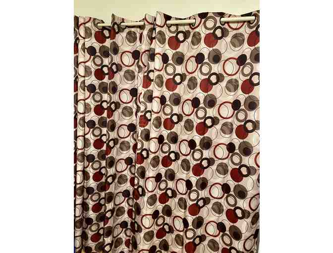 Thinking of doing some redecorating in the New Year? Here are 3 panels of curtains in a fresh contemporary pattern. Each panel measures 48 inches wide by 63 inches long. The panels have grommets for easy installation on the rod.