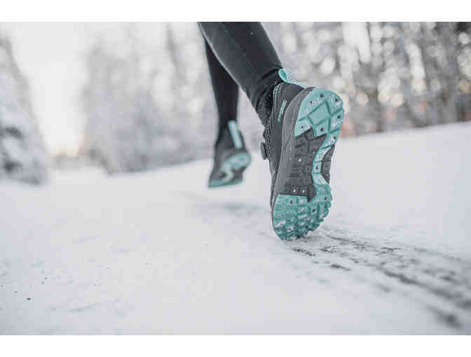 NewRun is the first real road running shoe from Icebug and it aims at all those that want to keep logging miles all year long. Why deviate from (or cancel!) the regular workout routine only because conditions got wintry? High comfort has been in focus when developing this shoe and then a waterproof GORE-TEX® upper crowned with the BOA® Fit System were obvious features to add. Low temperatures don’t go well with a narrow fit so the last has a roomy toe box and a straight toe line. The sole is well cushioned and its wide base both stability and long distance comfort are achieved. BUGrip outsole with dynamic steel studs makes running on icy surfaces feel like a walk in a park.