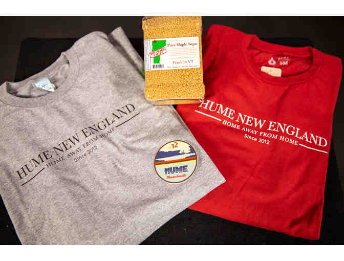 Hume New England is such a special place! Here are two shirts that represent HNE! Gray shirt is Large. Red Shirt is S/M. Also pure maple sugar sent straight from New England! Set also has HNE sticker.