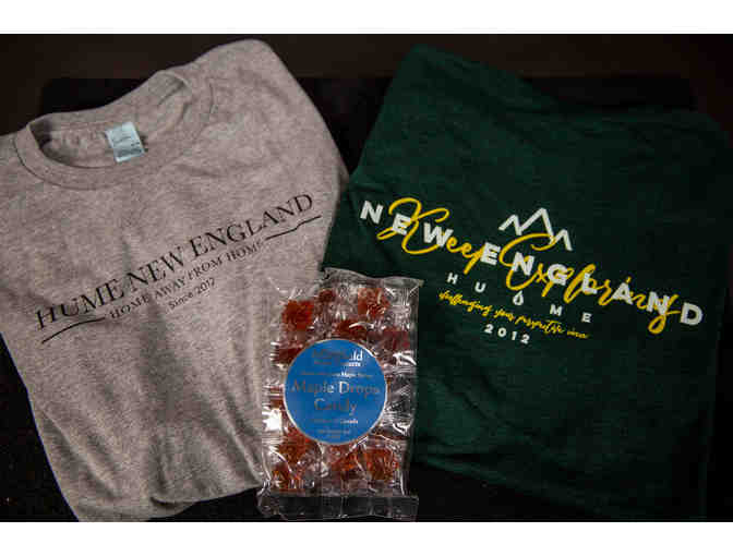 This set inlcudes a green HNE shirt (size small), and HNE shirt in gray (size medium). Set comes with Maple Drop candy- sent straight from New England for our auction!