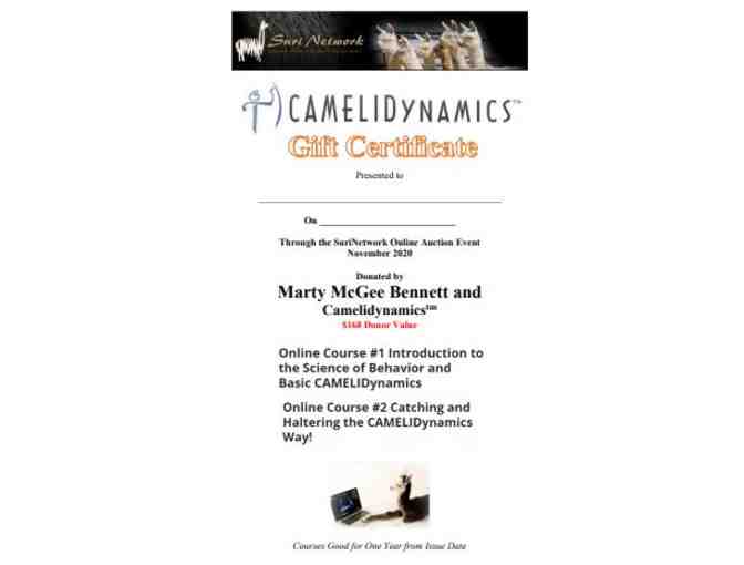 Two online classes from the premier expert, Marty McGee Bennett, in alpaca handling and behavior. Online Course #1 - Introduction to the Science of Behavior and Basic CameliDynamics. Online Course #2 - Catching and Haltering the CameliDynamics Way.