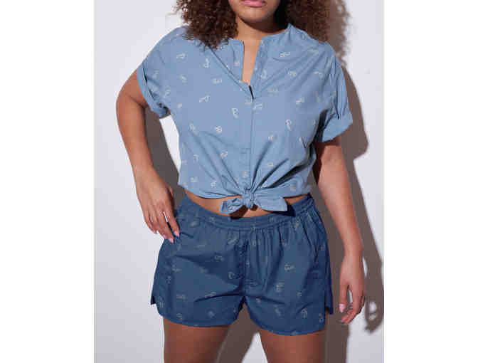 LIMITED EDITION ARTISINAL HAND DYED IN LOS ANGELES The Goleta short is inspired by long-gone utilitarian shorts we wore for sporting in school. They are made of a crisp clean 100% nearshore cotton poplin that will get better with wear, just like your favorite jeans. The encased triple-stitched waistband and caballo (double encased) seaming throughout means these are super strong and fit many body types. Goleta is anchored by strategically placed forward side seams that allow these to shaped to your body. Eazy, Sexy, Chic, and impossibly comfortable. Bed, Beach, Boardroom? The BODIE print was named for the magical lost in time deserted mining town in California. Our BERKELEY version of these favorites will remind you of a great pair of vintage jeans the ones with a creamy and warm undertone, blue but not basic.
