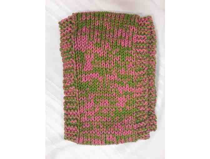 A one-of-a kind handcrafted accessory! This Hand-Knitted Acrylic Scarf comes in a pink/green intermixed color pattern and includes the natural variations characteristic of handcrafted yarn creations. Finished length is approximately 59". Care: machine wash cold; gentle cycle recommended. Made with care by Mrs. Roberta Brosius, SCA teacher and Christian Education supporter. Stay warm this winter in style!