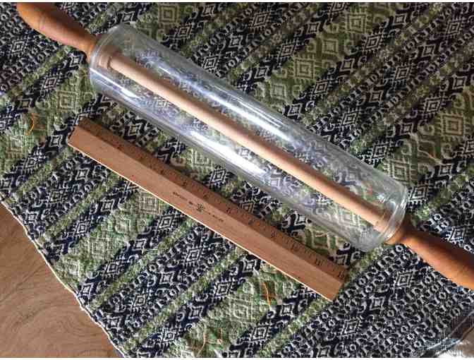 Unique vintage glass rolling pin with wooden handles