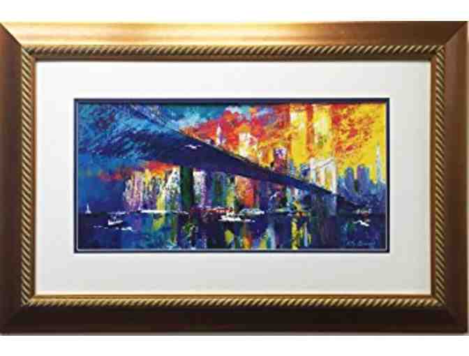 Framed Replica Art Print of Brooklyn Bridge Over Wall Street by Legendary Leroy Neiman