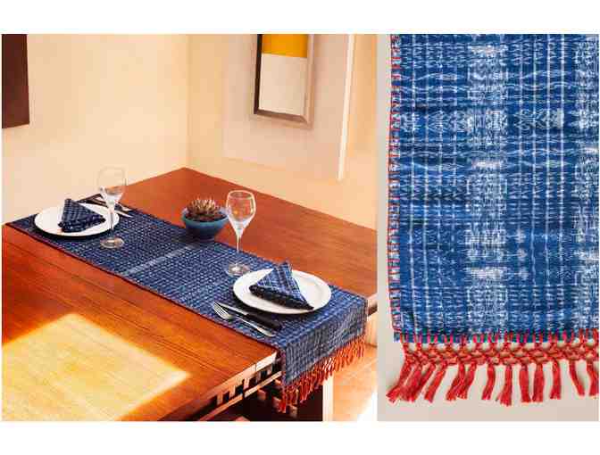 This package contains one set of four 20" x 20" hemmed napkins and a matching table runner, which has been intricately embroidered and hand