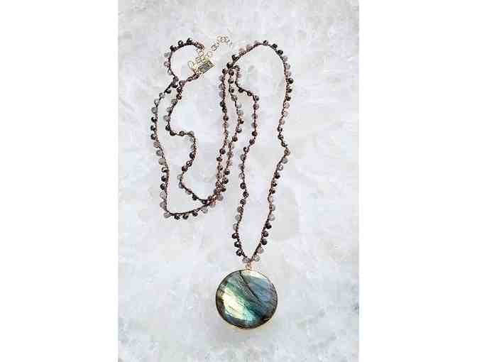Labradorite Bardot Necklace on 32" Handcrochet Labradorite and Pyrite Chain