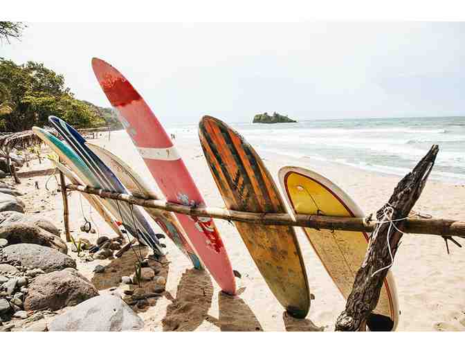 This auction prize is for a 1 hour private surf lesson for 2 people, here in Guiones, home of the best waves to learn how to surf in Costa Rica.