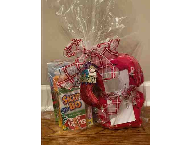 'Tis the season to be together....what better way than with a family fun gift. This gift package includes: 2 passes to Launch(Prattville location,) one 3 topping pizza from Papa John's (Vaughn Road), SkipBo, PlayDoh, Chutes and Ladders, Yahtzee and a red plush reindeer throw