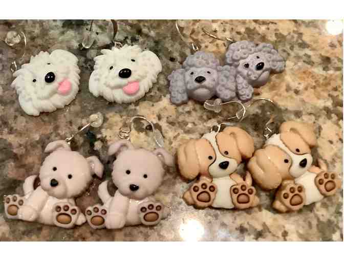 These adorable earrings are perfect for anyone in your family. The puppies are 3/4 - 1” long w 1/2 “ French wires. Light enough for little ears.
