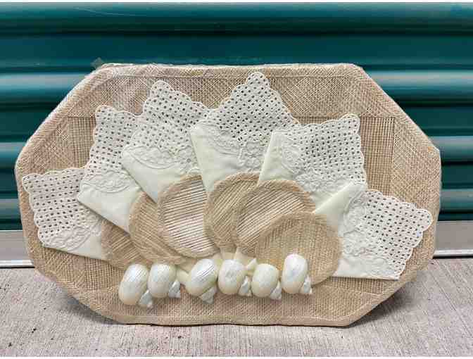Show your style with a 6 piece woven placement, coaster, and napkin set