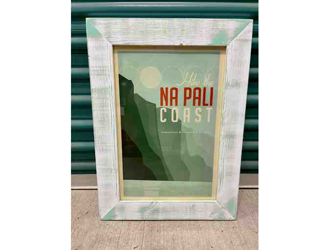 Enjoy the view of the Na Pali coast with a framed poster from Kauai Adventure Club, dated 1956.