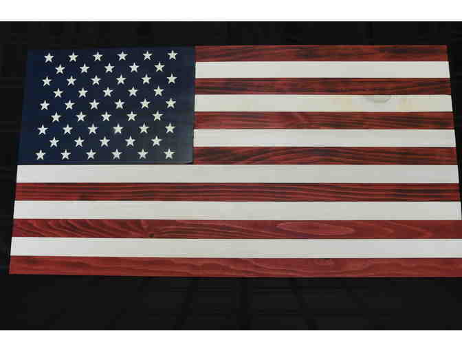 Bring home this beautiful handmade wooden American Flag. Made by a Friend of SONH, this flag measures 37 inches by 19.5 inches and is perfect to hang anywhere in your house!