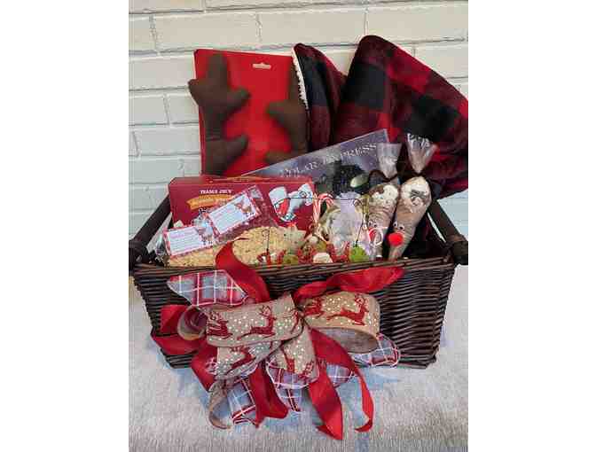 Enjoy a wonderful Christmas Eve with this delightful basket! Includes a "Rudolph Costume for your Car; Holiday Ornament Cookie Kit to Create Cookies for Santa; (2) Packages of "Reindeer Food;" "Elf Kisses;" Peppermints freshly picked from the "Candy Cane Forest;" Mulling Spices, a "Believe Bell;" Polar Express Book; (2) "Reindeer" Hot Cocoa packages; Plush Red and Black Buffalo Checked Fleece Throw and a "Ho Ho Ho" Ornament.
