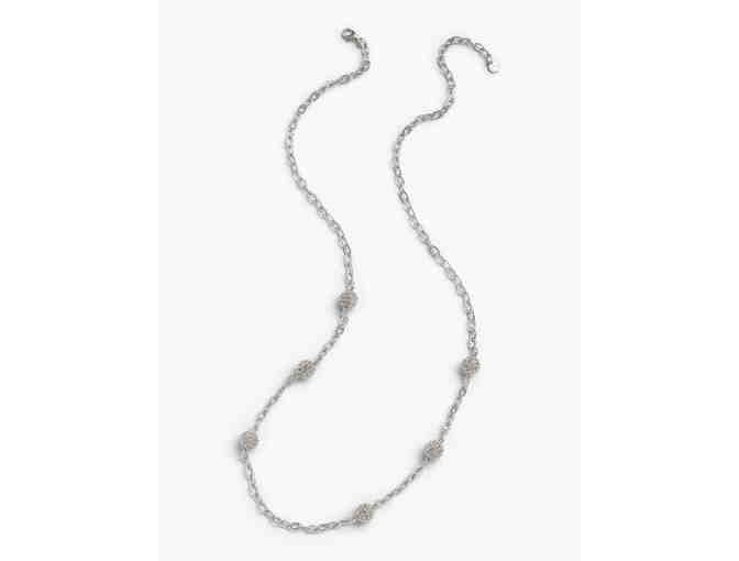 This layering necklace comes in gold and silver and features textured spheres for added elegance. 33" long +3" extender. Lobster closure. Imported. Material: 79% Brass, 20% zinc, 1% CZ.