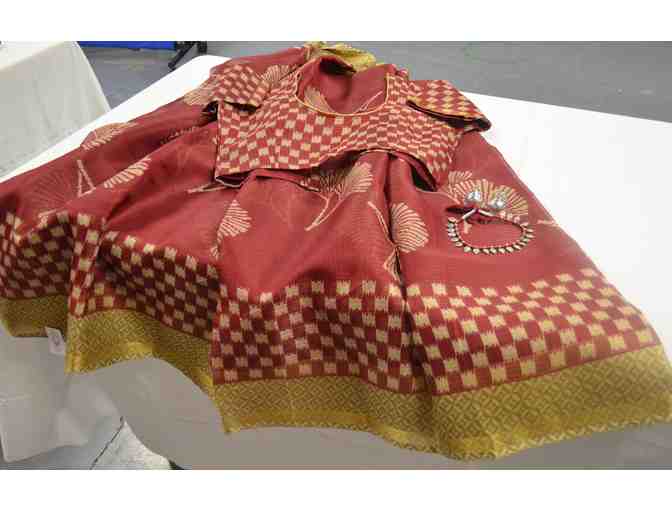 Beautiful brick red/garnet saree in lovely earth tones. The border is checkered. An elegant wear which is sure to get a second look.