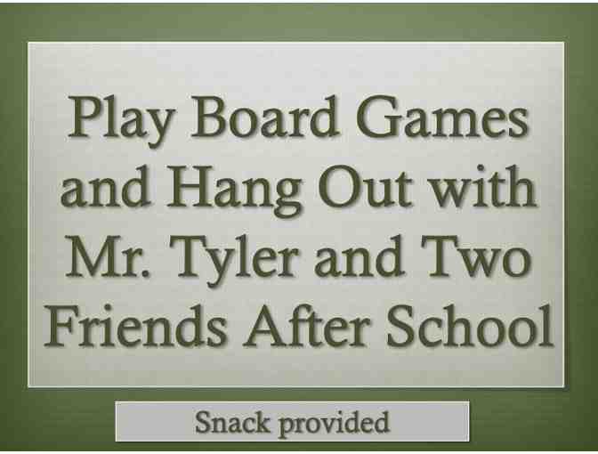 Play board games and hang out with Mr. Tyler and 2 friends after school! A snack will be provided.