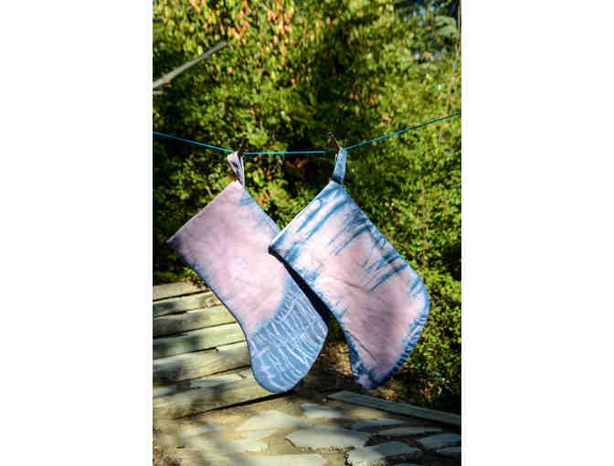 Indigo Shibori dyed Stocking over dyed with Madder Root